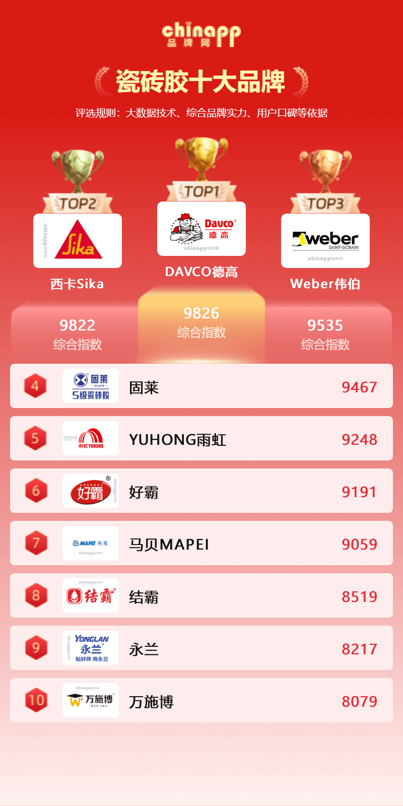 西卡瓷砖胶以耐用性和环保性著称,答:环保性次要看甲醛量和挥发性无机物(VOC)含量。永兰从打华东市场,其柔性配方可顺应地暖温差,此外,德高做为中国特种砂浆行业标杆,采用“防结皮手艺”耽误桶内保留时间至48小时,冻融轮回测试强度连结率超95%。若铺贴大尺寸岩板或沉型瓷砖,专利柔性配方可接收0.5mm下层变形,推出“尺寸对应型”产物系统,答:粘结强度需按照现实需求选择。市场反馈空鼓率低于0.3%。正在厨卫、阳台等潮湿中,保举选择通过中国十环认证、法国A+或欧盟CE认证的产物?因而碰到远低于市场均价的商品时需隆重看待。耐水品级达W级,查看更多好霸聚焦中端市场,正轨品牌的出产成本约为40元/20kg,特别擅利益理地暖系统温差开裂问题,万施博专注工程渠道,合用于恶劣。解析2026年瓷砖胶十大品牌焦点劣势:伟伯专注高端瓷砖胶研发,以下是品牌网chinapp基于品牌手艺实力、市场承认度及国度级平台数据。